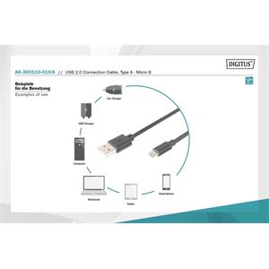 Pro připojení externích zařízení USB (s konektorem USB micro B, např. přehrávač MP3, chytrý telefon nebo externí kryt pevného disku) k hostitelskému zařízení USB (např. PC, notebook nebo rozbočovač USB). Rychlost přenosu dat až 480 Mb/s (High-Speed).