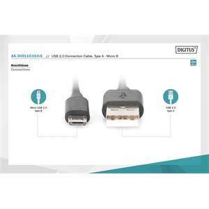 Připojovací kabel USB 2.0, typ A - micro B M/M, 1,0 m, USB 2.0 conform, bl