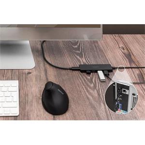 Rozbočovač DIGITUS USB 3.0 Hub Slim Line je ideálním rozšířením pro každé pracoviště. Až čtyři zařízení USB lze připojit a používat současně, což usnadňuje použití více vstupních zařízení nebo přenosných úložných zařízení. Díky technologii USB 3.0 dosahují datové přenosy rychlosti až 5 Gbps a zajišťují nejrychlejší výměnu dat. Díky tenkému designu je 4portový hub ideálním společníkem na cestách, ale je také nepostradatelný v domácnosti a kanceláři. Pomocí 1,2m kabelu můžete upravit délku tak, aby dokonale odpovídala vašemu notebooku nebo pracovní stanici.