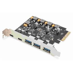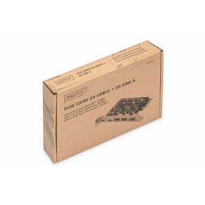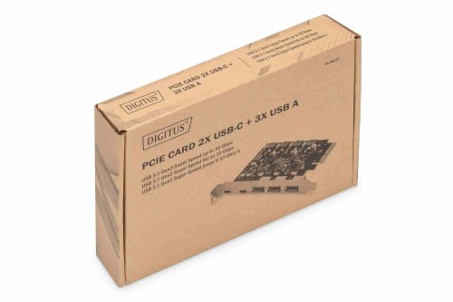 Digitus PCI Express Card rozšiřuje PC o 2x USB-C a 3x USB A port. K této kartě lze připojit různá zařízení, jako jsou pevné disky, DVD mechaniky, myš, klávesnice, čtečka karet a další.