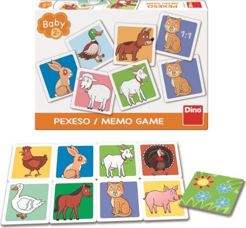 Paměťová hra pro nejmenší s jednoduchými a velkými obrázky domácích zvířátek.