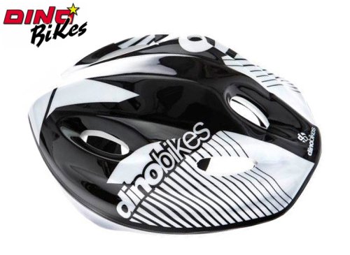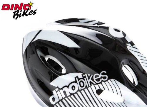 Dětská cyklistická helma Dino Bikes v černo-bílo-stříbrné kombinaci.