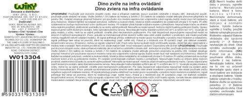 Dino Brachiosaurus RC na dálkové ovládání. Velikost 18 x 18 x 7,5 cm. IR ovladač. Svítící oči a otevírací tlama. Pohyb dopředu a dozadu. Výběr 3 frekvencí (A, B, C).