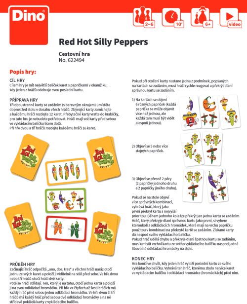 Slavnostní mumraj plný veselí, hudby a... papriček. Každou chvíli se některá vynoří z davu a hned v něm zase zmizí. Dokážeš nejrychleji zareagovat, když se objeví jejich správná kombinace? Postřehová hra pro celou rodinu, ve které se situace mění každou chvíli. Kdo získá nejvíc karet, vyhrává. Herní materiál: 99 karet, pravidla