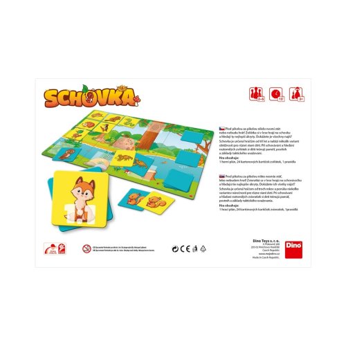 V kartičkové hře Schovka se schovává pořádná zábava. Hlavním cílem je nasbírat, co nejvíce kartiček zvířátek, které jsou ale důmyslně ukryté. Obsah balení: 1 herní plán24 kartonových kartiček zvířat1 herní plán Hlavní vlastnosti: vhodné od 3 let věkurozvíjí představivost, strategické myšleníprocvičuje jemnou motorikupodporuje kreativitu a představivostvyrobeno v ČR