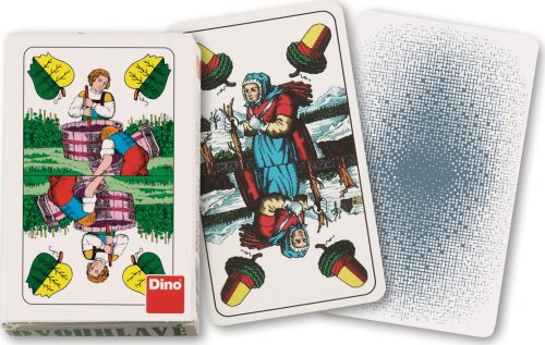 Dvouhlavé mariášové karty. Sadu karet využijete i na sedmu, prší a mnoho jiných her. Mariáš - zdvihová karetní hra pro 2-4 hráče. Hraje se s balíčkem 32 karet německého typu. Karty jsou buď jednohlavé nebo dvouhlavé. V mariáši se karty označují podle symbolů: srdce (nebo také červené), žaludy, listy (nebo zelené) a kule. Balení: 32 karet v papírové krabičce Karty byly vyrobeny v ČR.