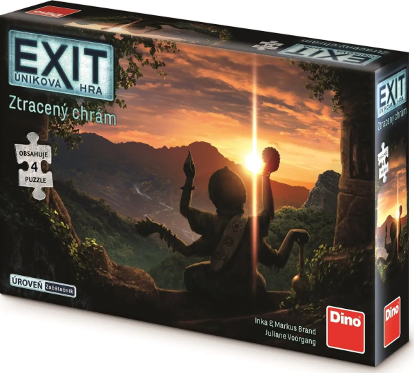 Postavte se nebezpečným lovcům pokladů a zachraňte nejen profesora, ale i prastarou knihu, která ukrývá záznamy o ztraceném chrámu. Hra EXIT: Ztracený chrám vás zavede až na neznámý ostrov a do hluboké džungle, kde budete řešit spoustu nečekaných úkolů. Osud profesora a legendami opředeného pokladu ze ztraceného chrámu je od té chvíle jen ve vašich rukou. Zdali jste na správné stopě, vám prozradí dešifrovací kotouč. Ten si ovšem nejprve musíte správně složit. Následovat budou další skládačky a rébusy, které musíte vyřešit, abyste měli šanci dokončit svůj důležitý úkol. Snadné to nebude, ale napínavé určitě ano! Hra Ztracený chrám je svou úrovní vhodná pro pokročilé. Hry EXIT: Únikové hry získaly v německém originále prestižní ocenění Spiel des Jahres 2017. Můžete si tak být jisti, že vás čeká skvělý herní zážitek. Balení obsahuje: 4 puzzle s 88 dílky12 rébusových dokumentů2 zvláštní předměty4 různě velké části dešifrovacího kotouče1 dvoudílná patentka1 návod (včetně nápověd a řešení) Hlavní vlastnosti: hra zaručí nejen zábavu, ale i napínavé zážitkyprocvičí paměť, postřeh, trpělivost i logické myšlenírozvíjí kreativitu a vyjadřovací schopnosti Dokumentace: návod ke hře Exit úniková hra s puzzle: Ztracený chrám CZ