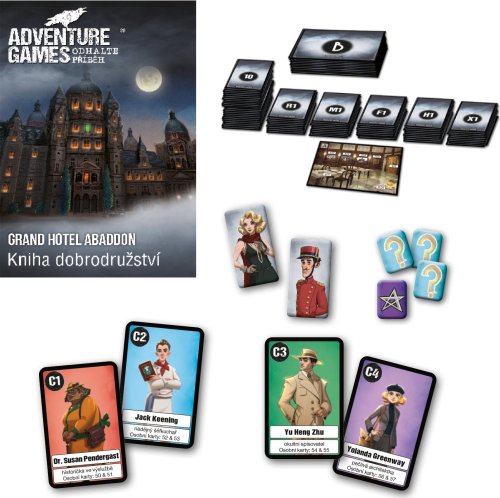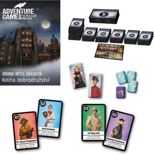 Otevřete dveře tajemného Grand hotelu Abaddon. Během kooperativní hry od Adventure Games se proměníte v hotelové hosty, kteří prožívají napínavý příběh o třech kapitolách. Každý hráč se převtělí do jedné či více postav (můžete je využít úplně všechny) a příběh tak spoluvytváří celý tým. Jedna kapitola trvá zhruba 90 minut a hru můžete odehrát jak najednou, tak na pokračování. Hra je báječná pro trénink spolupráce, která je v celém průběhu klíčová. Jedině jednotný tým, který si odsouhlasí svůj postup, má šanci dospět ke zdárnému konci. Balení obsahuje: 16 různých karet, 75 karet dobrodružství, 5 karet pravidel, 1 přehledová karta, 43 žetonů, 2 karty konce kapitol, karty postav, 4 hrací figurky se stojánky, 1 Kniha dobrodružství.