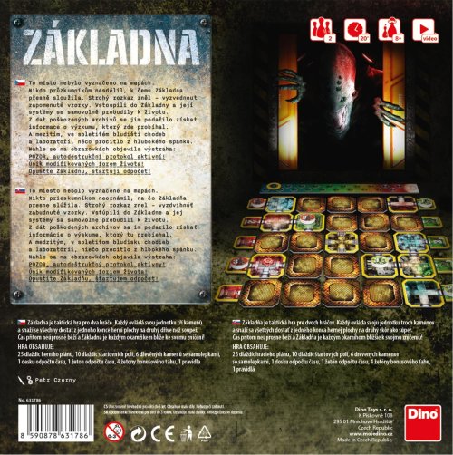 Nechte se strhnout do této originální české autorské hry a přijměte výzvu Základny. Zábava, napětí a taktika Vás čeká na každém kroku. Připravte se na adrenalinový zážitek a staňte se zachráncem všech zapomenutých vzorků! Zapomeňte na bezpečné hraní a vstupte do dobrodružného bludiště chodeb a laboratoří opuštěné Základny. Vyzkoušejte, jak rychle a takticky dokážete přesunout své tři kameny na druhý konec Základny a zachránit je před explozí. Každý Váš tah a rozhodnutí hraje klíčovou roli, a to i v souboji s časem. Čas je totiž Vaším největším nepřítelem, neboť Základna je tikající bomba, která se blíží svému zničení! Balení obsahuje: 25 dlaždic herního plánu10 dlaždic startovních polí6 dřevěných kamenů se samolepkami1 desku odpočtu času1 žeton odpočtu času4 žetony bonusového tahunávod ke hře v českém a slovenském jazyce Hlavní vlastnosti: hra zaručí nejen zábavu, ale i napínavé zážitkyprocvičí paměť, postřeh, trpělivost i logické myšlenívyrobeno v ČRdoba hry 20 minut