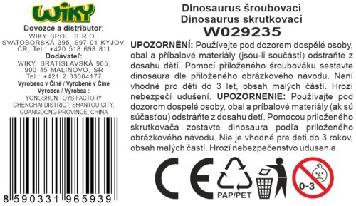 Dino šroubovací. Rozměry 16x4,5x8,5 cm. Balení obsahuje dinosaura a šroubovák.