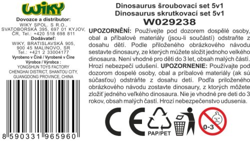Dino šroubovací set 5v1. Velikost 20x20x25 cm. Set 5 dinosaurů. Složením všech dinosaurů dohromady vznikne robot s vystřelovací zbraní.