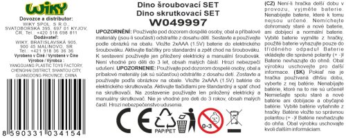 Dino šroubovací set s elektrickým šroubovákem. Velikost dinosaurů 20 cm. Sada obsahuje 3 dinosaury, elektrický šroubovák (17x12 cm), a manuální šroubovák. Návod na sestavení je součástí balení. Baterie 2xAAA, nejsou součástí balení.