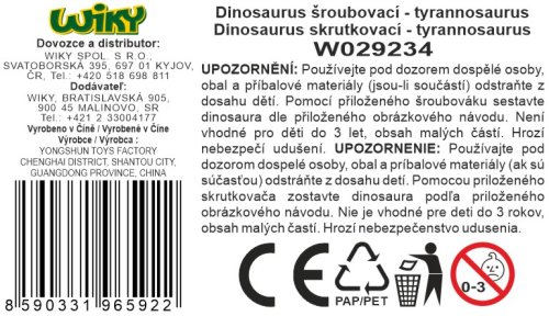 Dino šroubovací tyranosaurus. Velikost 15x4,5x9 cm. Balení obsahuje dinosaura a šroubovák.