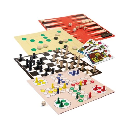 Velký soubor her s dřevěnými komponenty je kolekce 150 klasických společenských her, které zahrnují jak známé, tak i netradiční varianty. Tento rozsáhlý soubor klasických her by neměl chybět v žádné rodině. Mezi obsaženými hrami v tomto souboru 150 herních variant patří šachy, dáma, mlýn, halma, samotář, Člověče, nezlob se!, backgammon (vrchcáby), hry s kostkami, mariášové karty a kvarteto. Herní desky jsou vyrobeny z pevného kartonu, zatímco figurky a hrací kameny jsou dřevěné. Pokud se rozhodnete zahrát si každou hru jen jednou, máte před sebou více než 100 hodin skvělé zábavy. Hry trénují logické a strategické myšlení a se souborem si dobře vyhrají děti již od 6 let. Balení obsahuje: 2 oboustranné herní plány32 dřevěných šachových figurek30 dřevěných kamenů pro hru dáma16 dřevěných člověče figurek32 mariášových karet6 dřevěných bodových kostek1 pravidla Hlavní vlastnosti: hra zaručí nejen zábavu, ale i napínavé zážitkyprocvičí paměť, postřeh, trpělivost i logické myšlenírozvíjí kreativitu a vyjadřovací schopnostivyrobeno v ČR