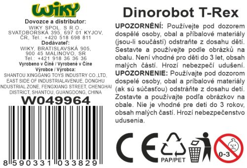 Dinorobot T-REX žlutý. Velikost 19,5x14 cm. Robot, transformuje se na dinosaura T-Rexe. Návod na složení na obalu. kov/plast