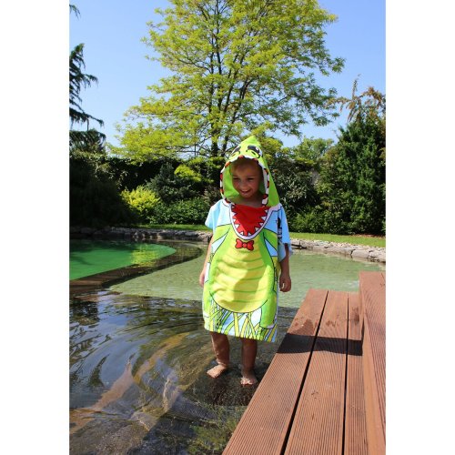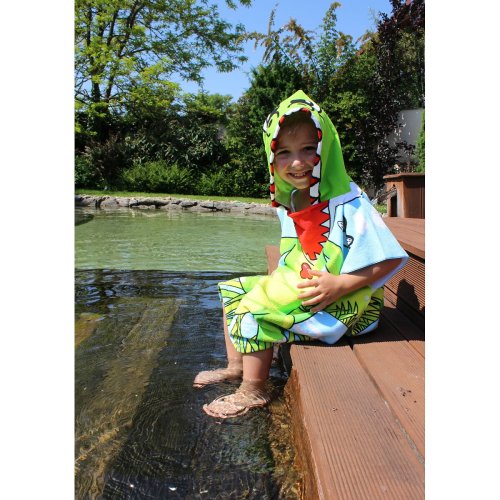 Ručníkové pončo pro děti Merco Dinosaur je ideálním doplňkem na pláž či k bazénu. Je vyrobené ze 100% polyesteru, skvěle saje a vaše dítě bude tak během chvilky suché. Pončo je lehké a skladné, zabere minimum místa ve vaší tašce či kufru. Volný střih umožňuje snadné převlékání. - materiál: 100% polyester - rozměry: 60 x 60 cm (bez kapuce) - hmotnost: cca 230 g