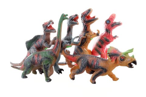 Dinosaurus gumový o vekikosti cca 42 cm ,který po zmáčnutí vydává zvuky.Provoz na 3 knoflíkové baterie.Věk 3+