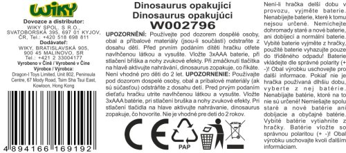 Interaktivní mluvící dinosaurus je edukativní hračkou seznamující dítě se zvuky zvířat, pomáhá podnítit kreativitu a povzbuzuje dítě ke komunika
