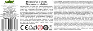 Dinosaurus s efekty zelený. Rozměry 26x18x13 cm. Vydává světelné a zvukové efekty. Aktivace tlačítkem na levé noze. 2xAG3 baterie, jsou součástí. balení. Manuálně pohyblivé nohy a hlava.