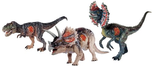 Dinosaurus vydávající zvuky, 3 druhy - T-Rex, Triceratops, Dilophosaurus. Figurky jsou pohyblivé, délka 23 cm.