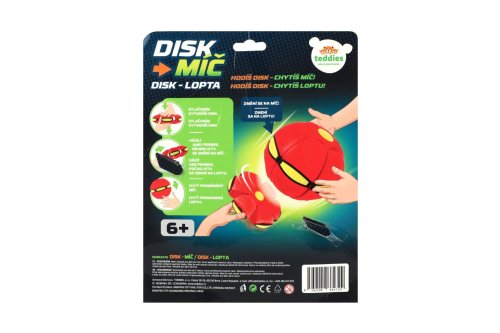 Zažij pořádnou dávku akce s originální hračkou, která mění tvar. DiskMíč je zábavná venkovní i vnitřní hračka, která se při letu promění z disku na míč – a překvapí každého! Hoď ho jako disk a sleduj, jak se ve vzduchu sám změní v míč. Ideální na hřiště, do parku nebo na zahradu. Skvělý pro rozvoj motoriky, postřehu a týmové spolupráce. DiskMíč je výbornou alternativou klasických míčových her a zaručeně pobaví malé i velké. Rozměry balení 22 x 27 x 7 cm. Vhodné pro děti od 6 let.