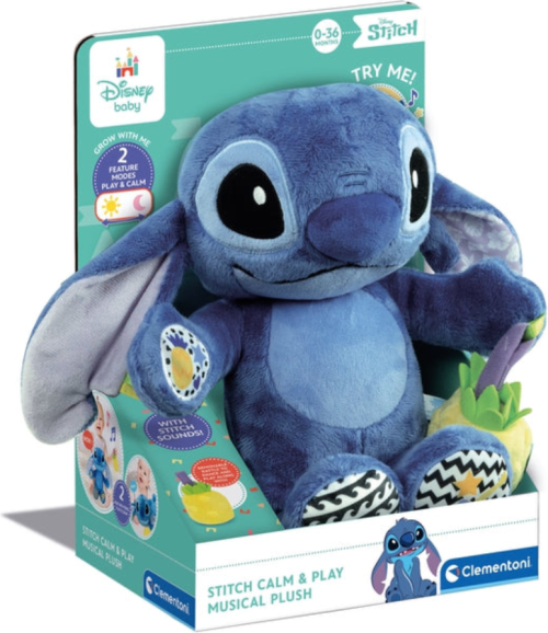 Interaktivní rozkošná plyšová hračka bude ideálním společníkem pro malé děti. Díky dvěma funkcím – režimu hry nebo klidu je Stitch báječný na hraní i během usínání. Přibližně 30 cm vysoké plyšové zvířátko je vyrobeno z příjemných materiálů na dotek, které poskytují pohodlí a teplo při mazlení. Stitch se svým přátelským vzhledem, charakteristickýma ušima a modrým kožíškem je věrnou kopií animované postavy. Plyšová hračka s multisenzorickými prvky disponuje pestrými vzory a materiály. Stisknutím tlačítka si vaše dítě může poslechnout melodie, dětské říkanky a různé zvukové efekty. Stitch zpívá své typické havajské melodie. Chrastítko v podobě ananasu je odnímatelné. Perfektní hračka pro stimulaci vývoje vašeho dítěte. Baterie: 2 x AAA, jsou součástí. Rozměry balení: 30 x 24 x 16 cm. Doporučený věk: 0–36 měsíců.