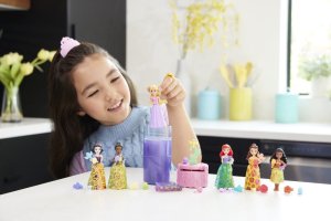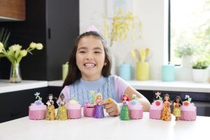 Tyto malé panenky s motivem zahradní party nabízí vzrušující zážitek při rozbalování díky technologii změny barvy Color Reveal™ a nečekanému počtu doplňků. Každé balení obsahuje malou panenku s překvapením Color Reveal™, například Ariel, Bellu, Vaianu, Lociku, Sněhurku a Tianu, u nichž přidání vody odhalí vzhled dané princezny. Překvapení zahrnují duhovou sukni z měkkého materiálu, doplňky na zahradní party, prsten a čelenku pro holčičku a víko, které slouží jako stůl na party.