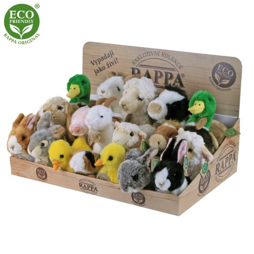 Ucelená sada exkluzivní kolekce plyšáků RAPPA v jednom originálním displeji! V balení najdete tyto artikly: 1x (220072, 211483, 590304, 211438, 231221, 211414, 201637, 201866, 210134, 209732, 220058, 201590, 251038, 251045, 226180), 2x (974821, 241190). Displej je z vrstveného papíru a jeho rozměr je 490 x 300 x 320 mm. Co to vlastně ECO-FRIENDLY znamená? Výplň plyšové hračky je vyrobena z recyklovaných PET lahví. Tento materiál je zcela bezpečný, na omak nerozeznatelný od standartní výplně a plně atestovaný pro bezpečnost i těch nejmenších. Rozhodli jsme se jít zelenou cestou co nejméně zatěžující životní prostředí – cestou ECO-FRIENDLY.