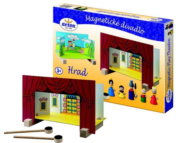 Magnetické divadlo Hrad obsahuje podstavce, dvoje kulisy z tvrdého papíru, dvoje vodící hůlky v a 5 dřevěných figurek. Ve figurkách je vlepený magnet který se přitahuje k magnetu ve vodítku. Nevhodné pro děti do 3 let. Obsahuje malé části. Hlavní vlastnosti: Hra rozvíjí dětskou fantazii a kreativitu při vymýšlení vlastních pohádkových příběhů Výrobek splňuje požadavky EU na bezpečnost hračekVhodný pro děti od 3 let