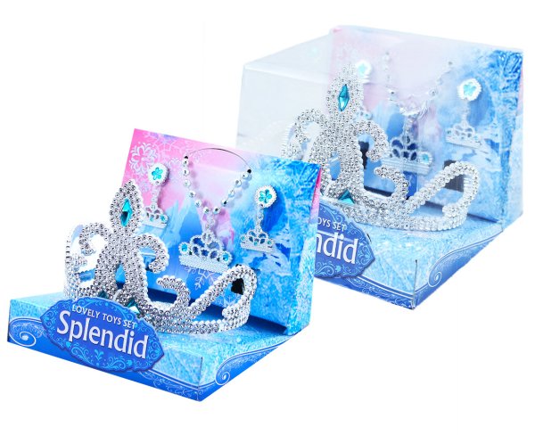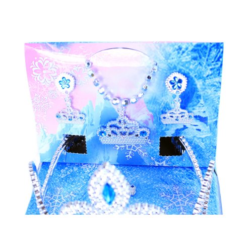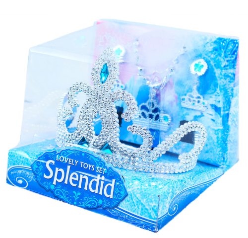 Krásná korunka s náušnicemi, náhrdelníkem a prstýnkem pro všechny princezny. Doplňky jsou zdobeny modrými prvky. Perfektní sada ke kostýmu! Doporučeno pro děvčata od 3 let.