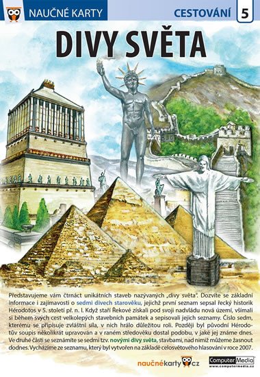 Zajímá vás, které jedinečné stavby byly zapsány na seznam divů starověku? A které unikáty zvítězily v celosvětovém hlasování a dostaly se mezi tzv. nové divy světa? Ilustrovaný přehled doplněný základními informacemi i zajímavostmi vás seznámí s divy, které se nedochovaly, ale i s těmi, které můžete obdivovat i dnes. Není náhoda, že sedm z vybraných památek je na Seznamu světového dědictví UNESCO.