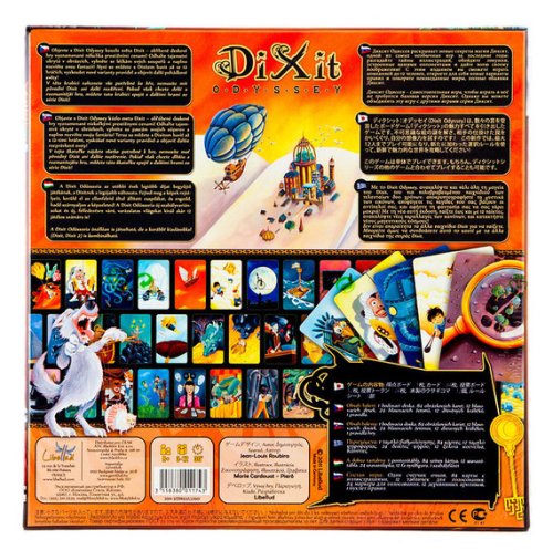 Objevte s Dixit Odyssey kouzlo světa Dixit. Samostatně hratelné pokračování série hry Dixit. Objevte s Dixit Odyssey kouzlo světa Dixit - oblíbené deskové hry vyznamennané několika prestižními cenami ! Odhalte tajemství ukrytá v obrázcích, vyhněte se léčkám svých soupeřů a naplno rozviňte svou fantazii ! Nyní se můžete s Dixitem bavit až ve 12 hráčích, vyzkoušt nové varianty pravidel a objevit další pohádkové světy ! V této krabici naleznete vše potřebné ke hře, nemusíte mít původní Dixit ani další rozšíření. Pokud však chcete delší a rozmanitější hru, můžete tuto krabici spojit s dalšími hrami ze série Dixit ! Balení obsahuje: 1 bodovací deska, 84 obrázkových karet, 12 hlasovacích desek, 24 hlasovacích žetónů,12 dřevěných králíčků, 1 pravidla