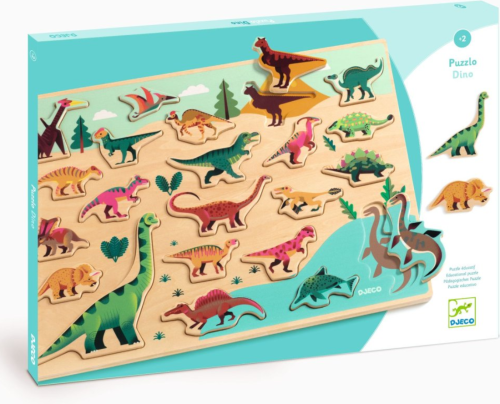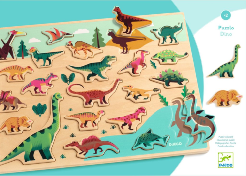 Barevná dětská vkládačka s motivem dinosaurů. Výhody: