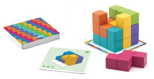 Dřevěný hlavolam pro procvičení prstů i mozkových buněk. Sestavte si část krychle pomocí předlohy a následně kostku doskládejte.