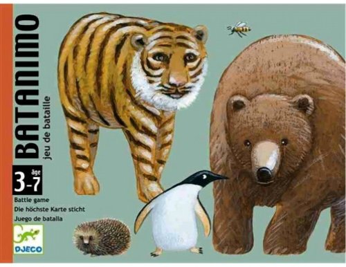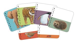 Zábavná hra Kdo z koho. Které zvíře má větší sílu? Hráči postupně otáčejí karty ze svého balíku a ten, kdo má na obrázku větší zvíře, bere karty ostatních. Na každé kartě je vyznačen metr, takže i malé děti jednoduše poznají, které zvíře přebíjí ostatní. Vhodné pro děti ve věku 3-6 let