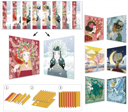 Vytvořte si obrázek s kinetickým efektem. Záleží na úhlu pohledu! Zábavná výtvarná sada, kde vytvoříte 2 obrázky z jednoho. Obrázky jsou viditelné z různých úhlů. Sada obsahuje 4 obrázky s kinetickým efektem. Vhodné pro děti od 7 let. Tento výrobek není hračka. Jedná se o dekorativní předmět.