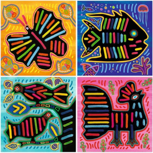 děti podle návodu provlékají žinylkové drátky velkými otvory v obrázku a tím dotvoří nádherný barevný design inspirovaný mexickým uměním velmi jednoduchá aktivita i pro menší děti na procvičení fantazie a motoriky balení obsahuje: 4 pevné ilustrované karty s otvory (20 x 20 cm), 130 žinylkových drátků a návod