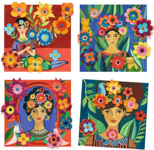 Současná ilustrátorská interpretace díla velké umělkyně. Vytvořte 3D dekorace, které zvýrazní ilustrace. Reliéfní papírové lístky předem vyřezané do různých tvarů. Snadná montáž díky krásným barevným spojovacím prvkům. Instruktážní brožurka poskytuje informace o umělci a uměleckém hnutí, ke kterému patří. 1 návod krok za krokem - kousky potištěného kartonu se postupně skládají a překrývají, aby vytvořily 4 portréty, které si hrají s perspektivou. Kartonové obaly s certifikací FSC®.