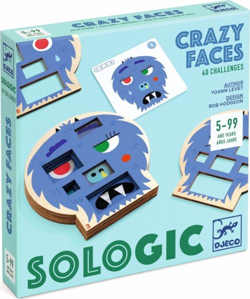 Vtipné dřevěné obličeje, se kterými je radost hrát. Zvyšování úrovně obtížnosti. 40 výzev. Jen trochu děsivé monstrum, které si děti od 5 let prostě zamilují. Pouze 1 možné řešení. Řešení problémů jsou uvedeny v brožuře. Dřevo s certifikátem FSC®.