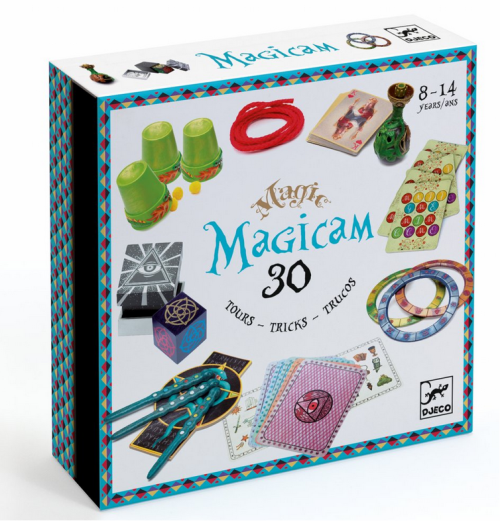 Velký set pro opravdické kouzelníky. Nechte věci mizet, měnit, nebo vytvořte dokonalé iluze. Magicam je sada se vším, co je potřeba, aby se z vás stal skvělý kouzelník. Sada obsahuje 30 různých kouzelnických triků. Obsah byl vyvinut profesionálními kouzelníky a navržen společností Djeco. Kultivuje obratnost, logiku, vystupování před publikem a sebevědomí. Přiložená brožura obsahuje jasné a přesné pokyny. Balení obsahuje: 40 doplňků (karton, dřevo, plast), návod k použití Vhodné pro děti od 8 let.