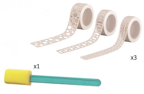 Kreativní sada pro malování obrázků pomocí šablonových pásků a houbičky.