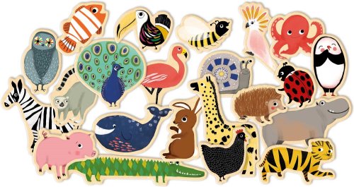 Dřevěné magnetky s motivem zvířátek. Jak snadné si vytvořit svůj zvířecí svět se spoustou příběhů. Celkem 36 magnetických zvířatek (např. páv, žirafa, krokodýl, chobotnice, hroch, zebra, sova a mnoho dalších) k vystavení na ledničku nebo jinou kovovou plochu. Magnimo zvířátka z lesa i z jungle vhodné pro děti od 2 let.