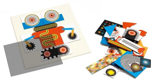 Magnetické puzzle Kinoptik pracují s optickým klamem. Každý obrázek má na sobě řadu čar, které po přejetí přiloženého černého plastu vytvářejí dojem pohybu. Balení obsahuje: podložku, 2 plastové karty, 60 magnetických prvků a ilustrovaný návod k použití. Vhodné pro děti od 6 let.