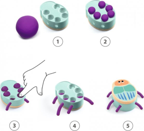 děti vyplní modelínou otvory v broučcích a zatlačí do nich prsty, aby modelína vycházela po stranách obracejí tvar a ta-da - jsou tam krásní broučci včetně nožiček po dokončení vyjmou modelínu z otvorů a mohou začít znovu...zábava je nekonečná. modelovací aktivita, při které jsou děti vedeny k tomu, aby samy zpracovaly modelínu ultra měkká hmota na hraní, která je ideální pro malé ručičky barevný obrázkový návod