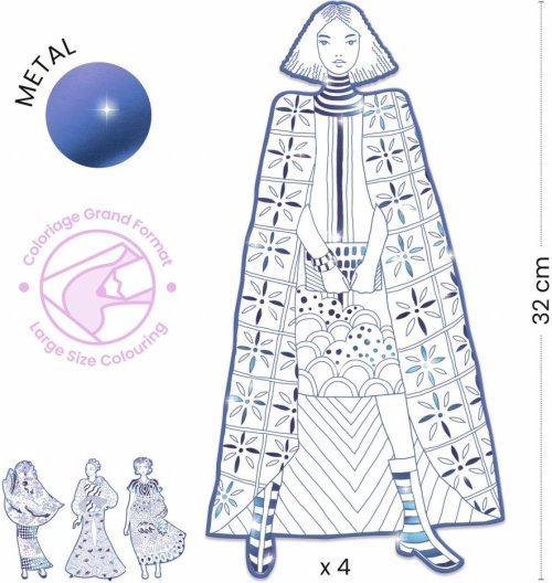 přehlídka dívek se stylovým oblečením, které děti mohou vybarvit podle svých představ čtyři velké obrysy (32 cm vysoké) nabízejí oblečení pokryté vzory a zdobené lesklými plochami, aby modely vypadaly ještě lépe modelky jsou vyřezány z odolného, tvrdého kartonu, takže hotové výtvory dětem dlouho vydrží na hraní nebo jako dekorace balení obsahuje: 4 obrysy modelek k vybarvení, zdobené metalickými plochami