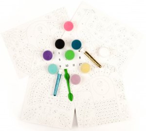 Sada obsahuje: 4 obrázky, 1 špachtli, 9 kelímků s barevným pískem a 2 tubičky třpytivých flitrů.
