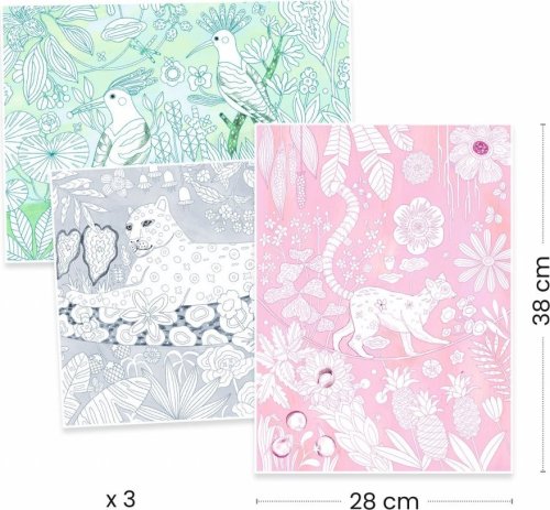 každá kapsa je prezentována jako portfolio a obsahuje 3 velké obrázky k vybarvení pro výjimečné nápady na vybarvení jsou nabízeny různé přístupy s barevnými okraji, světlým pozadím, tmavým pozadím a dalšími ať už se budete řídit barevnou paletou a šablonami navrženými umělci, nebo popustíte uzdu své fantazii, je jen na vás, jak se "vybarvíte" jemný papír umělecké kvality, silný s mírným zrnem uschovejte balíček a použijte jej jako kreslící podložku vyrobeno v Evropě z papíru a kartonu s certifikátem FSC®