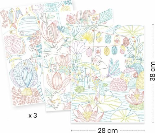 každá kapsa je prezentována jako portfolio a obsahuje 3 velké obrázky k vybarvení pro výjimečné nápady na vybarvení jsou nabízeny různé přístupy s barevnými okraji, světlým pozadím, tmavým pozadím a dalšími ať už se budete řídit barevnou paletou a šablonami navrženými umělci, nebo popustíte uzdu své fantazii, je jen na vás, jak se "vybarvíte" jemný papír umělecké kvality, silný s mírným zrnem uschovejte balíček a použijte jej jako kreslící podložku vyrobeno v Evropě z papíru a kartonu s certifikátem FSC®