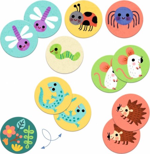 kartonové kartičky, které se snadno uchopí rozvíjí pozorovací a paměťové schopnosti krabice ve tvaru kostky, která se snadno a zábavně přepravuje pomocí provázku vyrobeno z papíru a kartonu s certifikací FSC® balení obsahuje 32 kartiček
