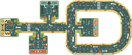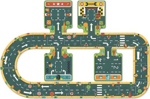 Z puzzle lze poskládat několik variant silničních okruhů (viz obal) a jezdit po sestavených silnicích s autíčky, na stole či na podlaze. Rozměr složeného puzzle cca 72 x 63 cm
